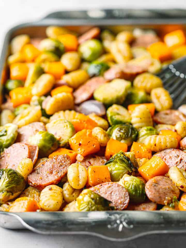 Easy Sheet Pan Chicken Sausage with Brussels Sprouts